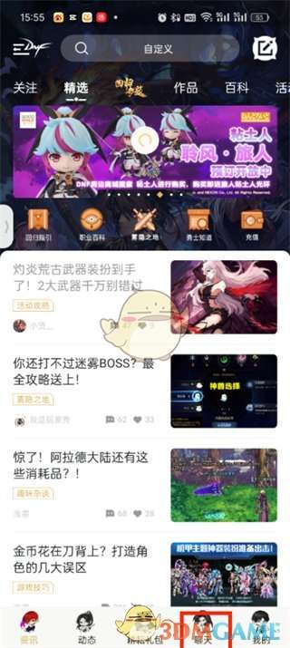 1、首先打开dnf助手软件,进入到首页中后我们需要点击右下方的【聊天】按钮;