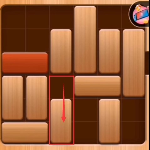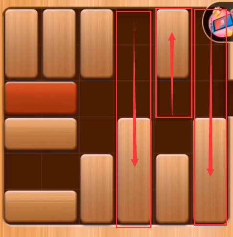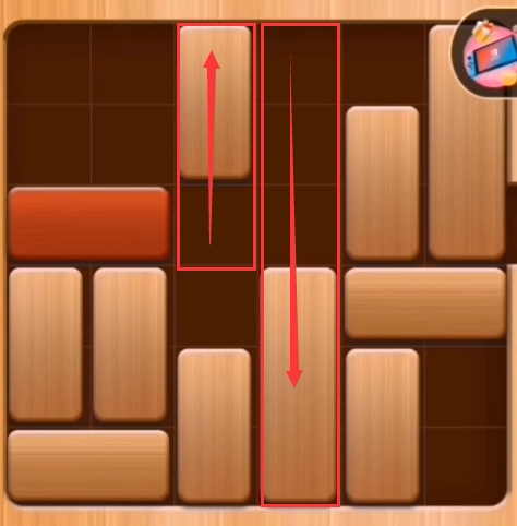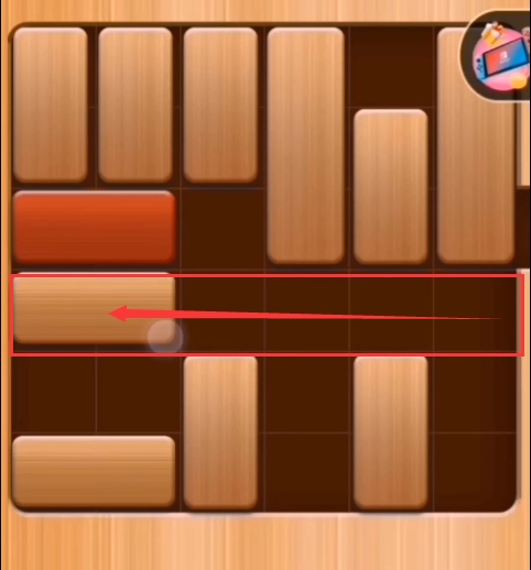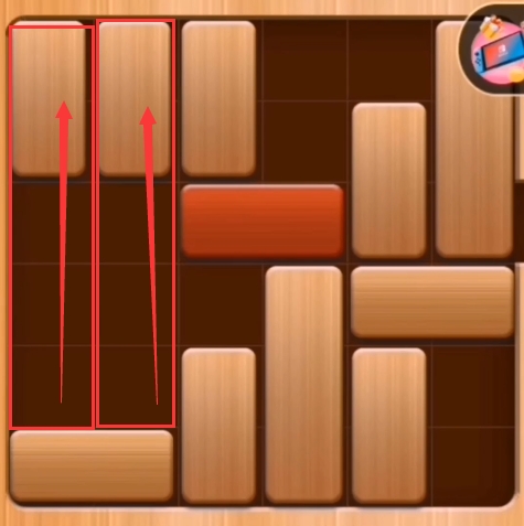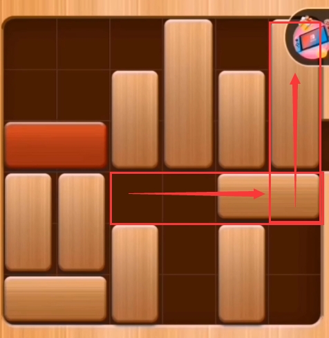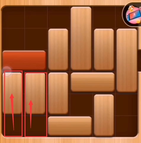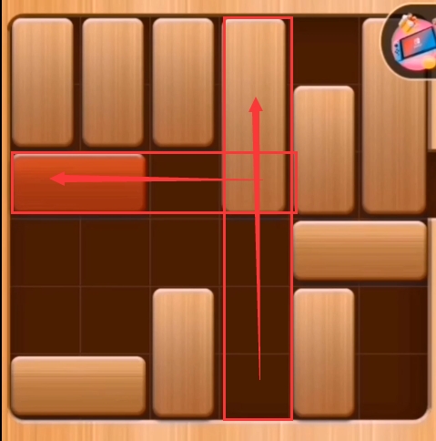 第八步:红木往左边推、第四列的积木往上推: