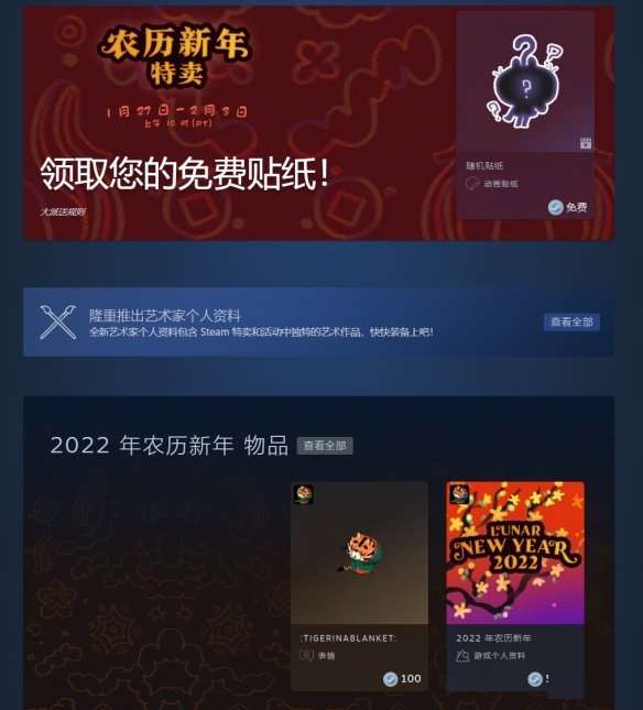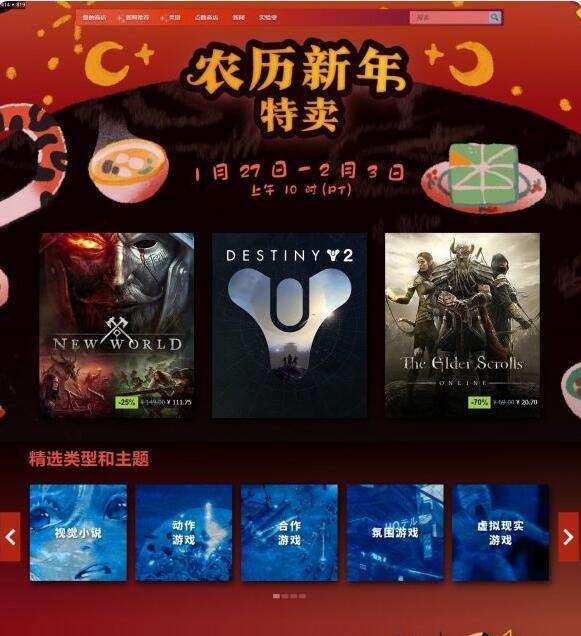 Steam平台农历新年特卖正式开启,本次活动时间为北京时间1月28日至2月4日凌晨2点,不少游戏更是历史新低特价,包括《生化危机8》、《女神异闻录5对决:幽灵先锋》首次5折,还有免费老虎贴纸领取,一起来看看。