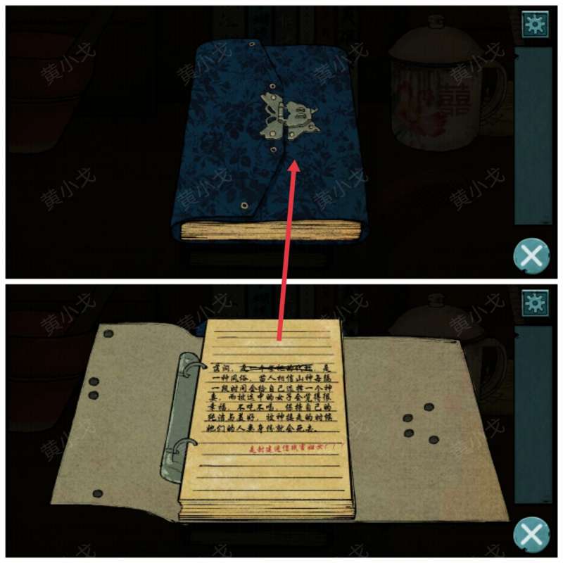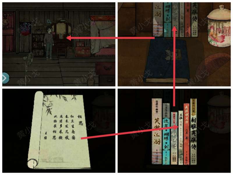 6.点击笔记本上的密码锁,根据诗集上的线索,调整密码锁:红豆生南国