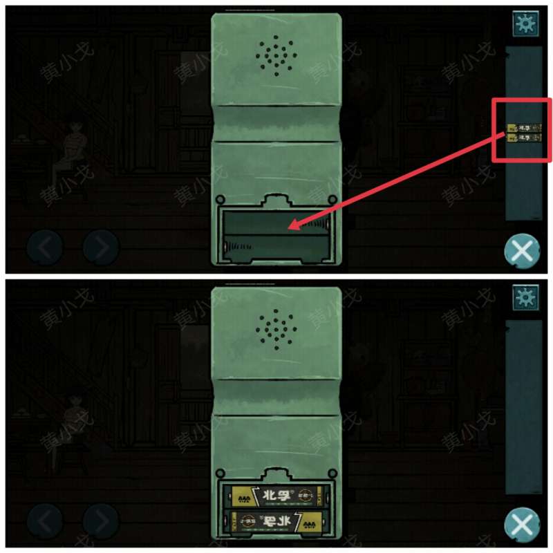 11.(一楼)把【电池】装进游戏机,获得线索:出门右走尽头。然后一直往右走
