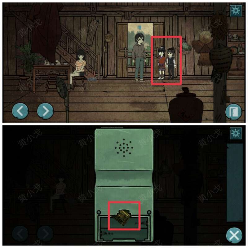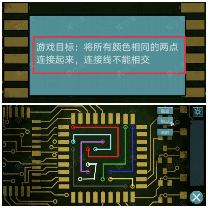 8.(一楼)下楼,跟小孩子对话。点击游戏机的线路板,查看游戏说明,完成小游戏