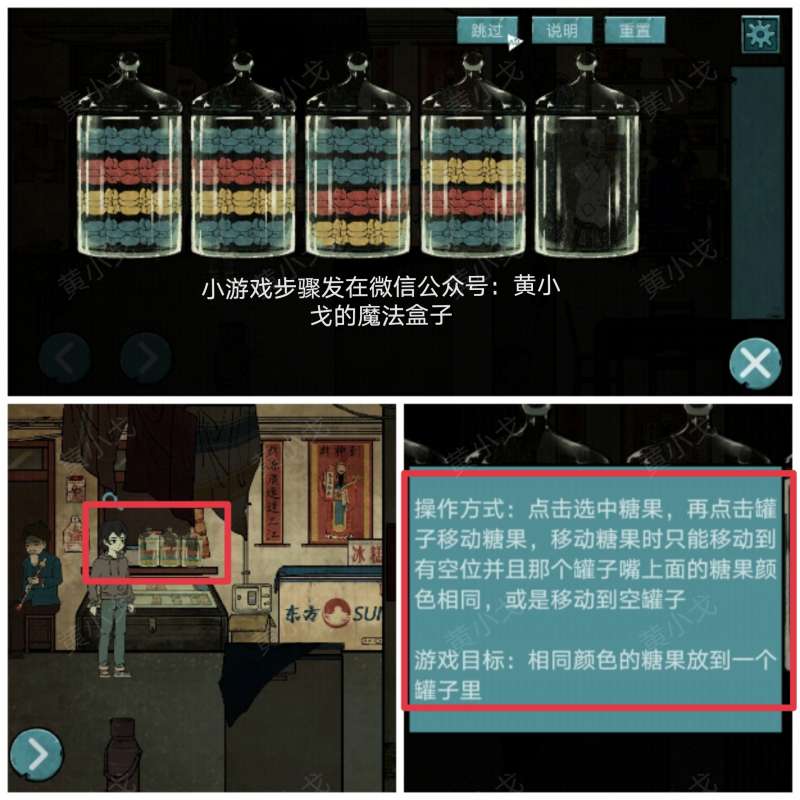 9.(小卖部)点击玻璃柜上的糖果罐,查看游戏说明