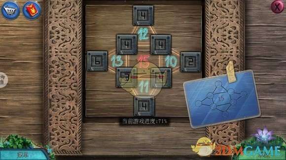 左侧,门——安数字(4个),放门的说明——调整正确数字,进入耳房
