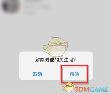 4、弹出提醒框中点击解除的选项,即可取消关注用户。