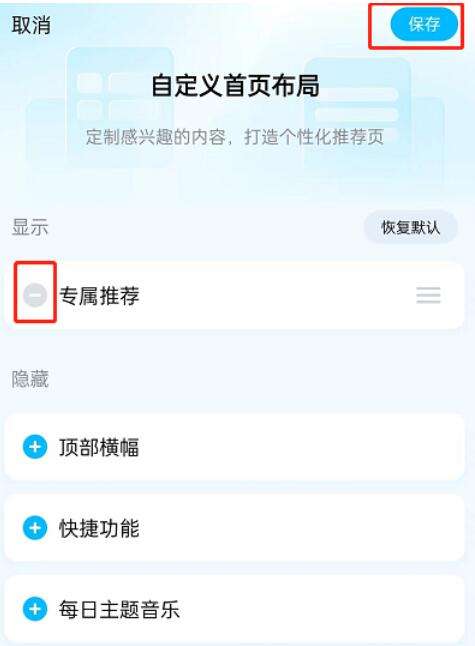 注:酷狗音乐目前要求首页必须有一个或以上的卡片,因此我们会留下一个。