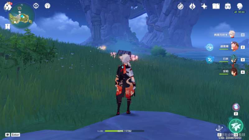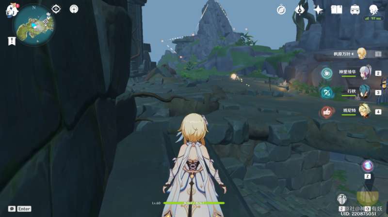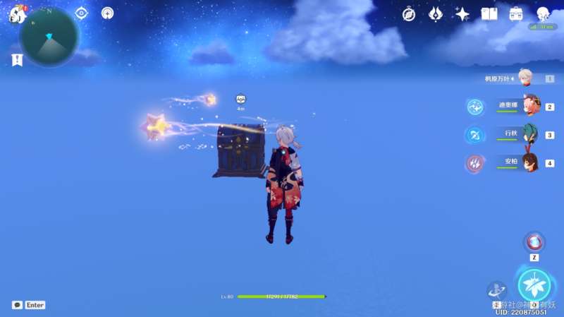 可以看到一个可以触发的四叶草风车,触发风场后,来到天空就可以看到我们第六个凝核的位置了