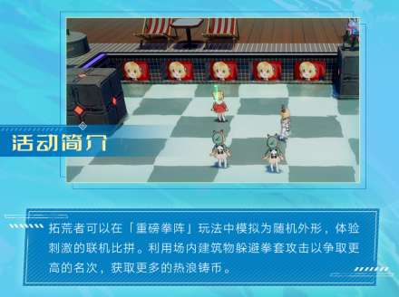 拓荒者可以在「重磅拳阵」玩法中模拟为随机外形,体验刺激的联机比拼。