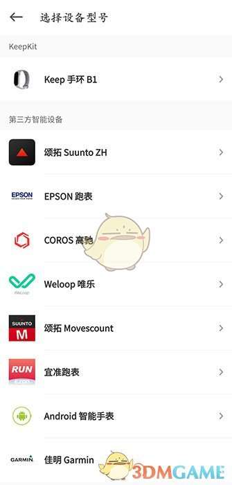 4、进入后有许多的手环与手表选项,根据购买的产品选择相应的型号,不过要注意购买的手环是否支持匹配keep哦。