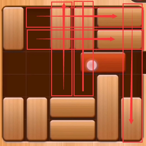第七步:第六列的积木往下推、第一排、第二排的积木均往右边推、第三列、第四列的积木均往上推: