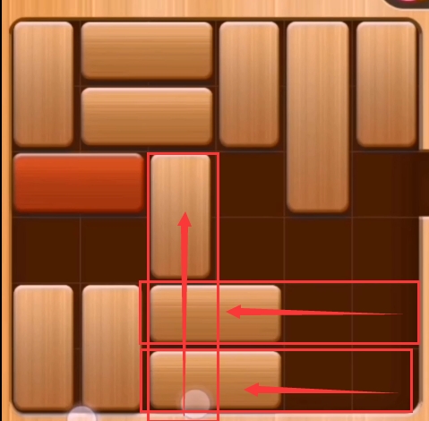 第六步:第五列的积木往下推、第四列的积木往下推、第一排、第二排的积木均往右边推: