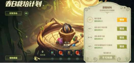 (1)活动期间,召唤师完成每日任务,可领取随机材料,使用材料可培育种子;