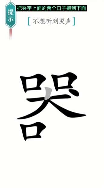 1、首先我们把【哭】字上面的【口】拖一个到【哭】的下面。