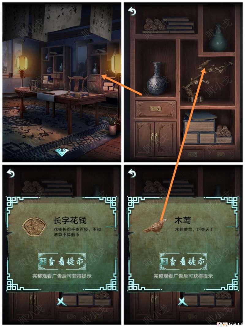 5.点击右侧的柜子,获得【长字花钱】和【木莺】