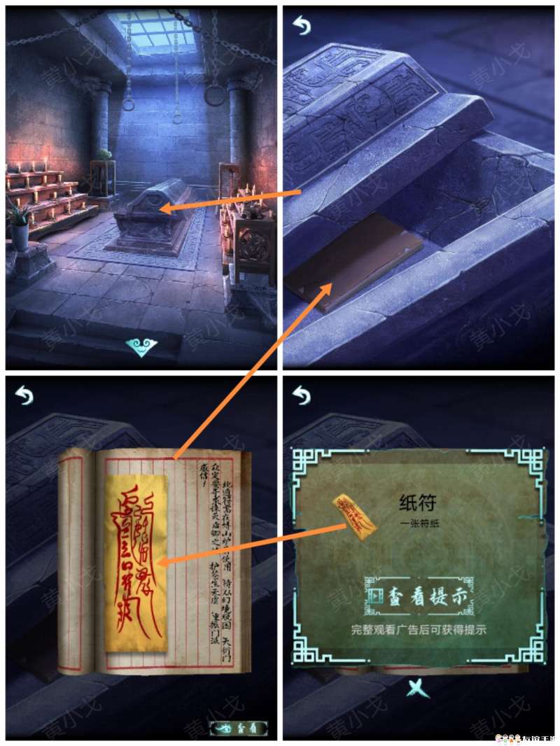 24.触发机关,打开石棺,查看书的内容,获得【纸符】