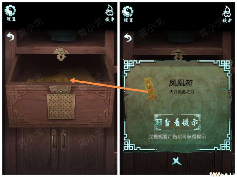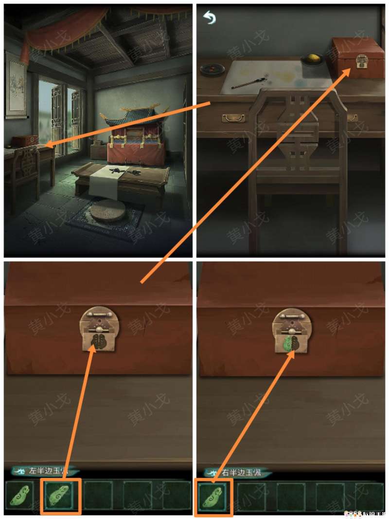 20.点击桌子上的盒子,嵌入【左半边玉佩】和【右半边玉佩】