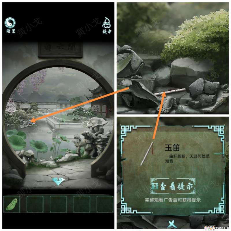 18.(画中-庭院)点击雕像,获得【玉笛】