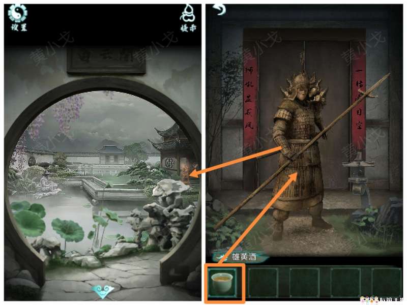 15.(画中-庭院)点击拦路的沙兵,使用【雄黄酒】