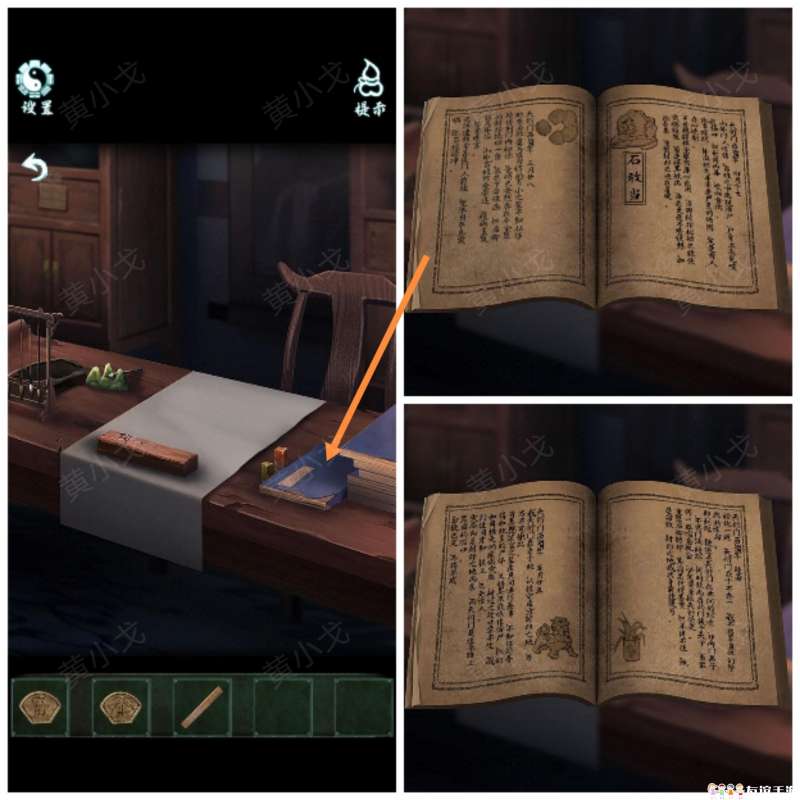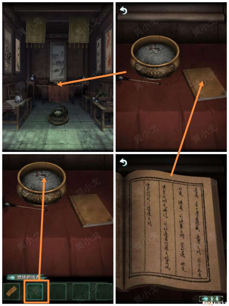 8.点击供桌,查看书的内容;把【燃烧的线香】插入香炉