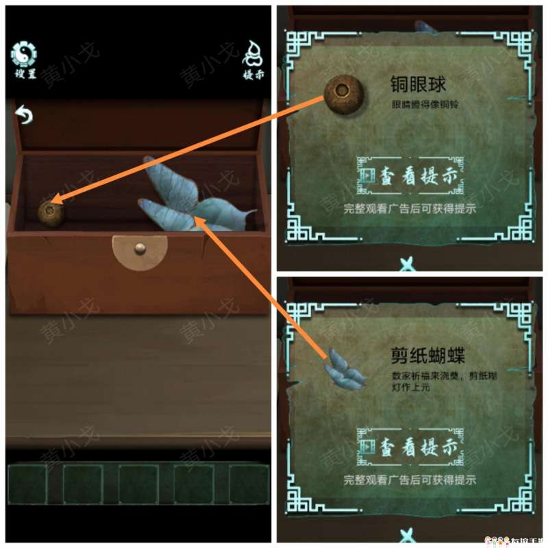 21.打开盒子,获得【铜眼球】和【剪纸蝴蝶】
