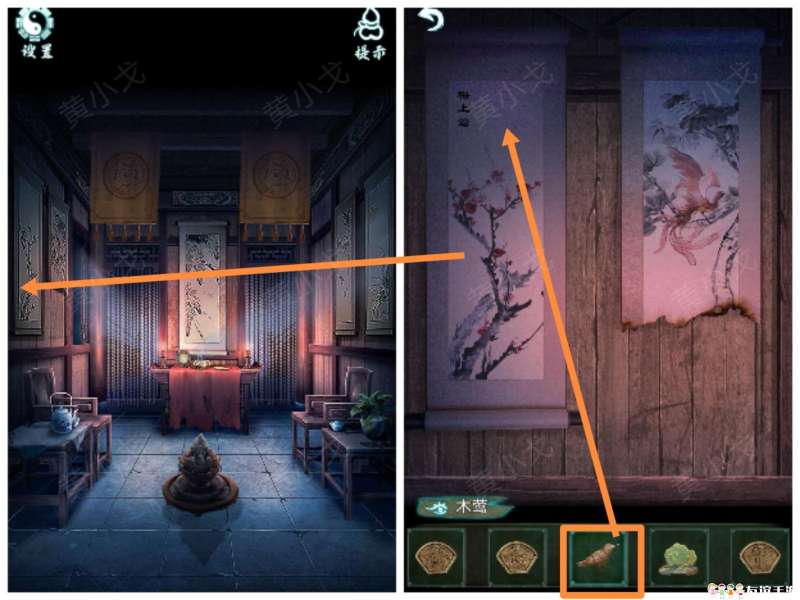 17.点击左侧墙上的梅花图,放上【木莺】