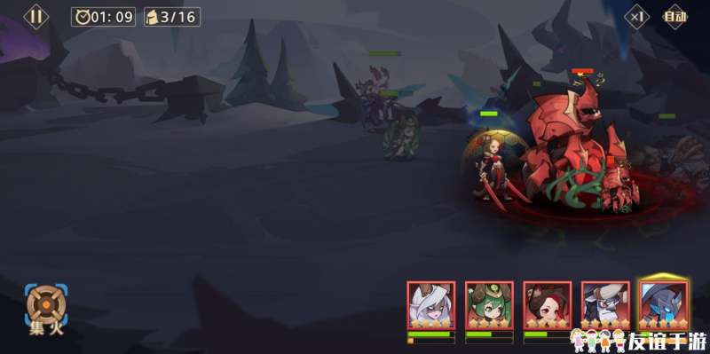 5、如果血量足够,也不用操作太细,直接集火,不然操作不当,浪费输出可能导致战斗超时。