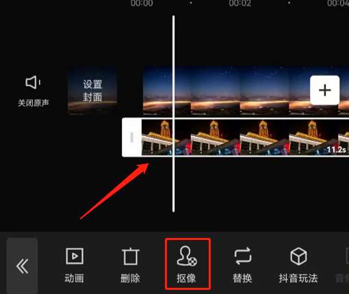 2、点击视频素材,点击抠像。