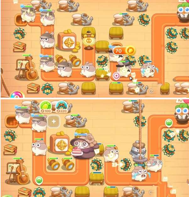 地图右边的道具清理完毕,将炮塔火力集中在地图左端,小心冻冻兔,快速打掉冰块,将剩余道具全部清理掉。