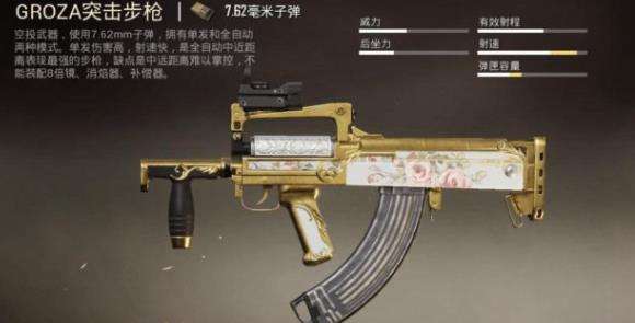 而作为游戏中空投才能获得武器GROZ更是相当强大,他虽然只能装弹夹和倍镜这两个配件,但丝毫不影响他是40米中的枪之王者。因为它装配的是7.62mm子弹,它不仅有着超高的伤害,相对如akm来说,他的设计速度可就快多了。