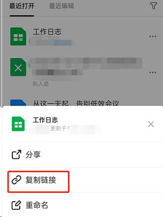 2、选择需要的文档,点击右侧三个点,再点击复制链接。