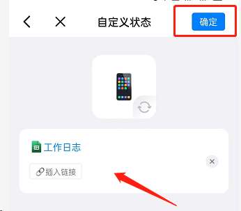 5、长按粘贴链接,文档就到状态上了,点击确定即可展示文档状态。