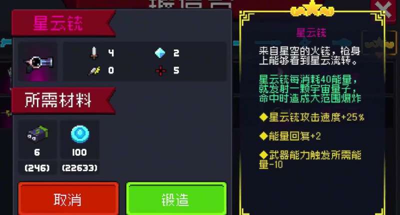 星云铳是一个高射速武器,实战起来的效果和聚爆类似。星云铳有着极高的射速,这个攻速效果会在解锁一级之后,再次提升20%。星云铳每次射击都会消耗2点能量,当消耗能量达到30点之后,就会发射出一颗特殊的星云子弹,造成大范围的伤害,并附带灼烧效果。极高的射速搭配上极高的伤害,但由于耗蓝的速度,许多角色根本负担不起。好在作为神话武器,星云铳可以升级,二级的星云铳会自动回复使用者的能量,三级的星云铳发射星云子弹的消耗量,从三十降至二十,打十发子弹就能释放一次强化攻击,输出效率会得到巨大的提升。