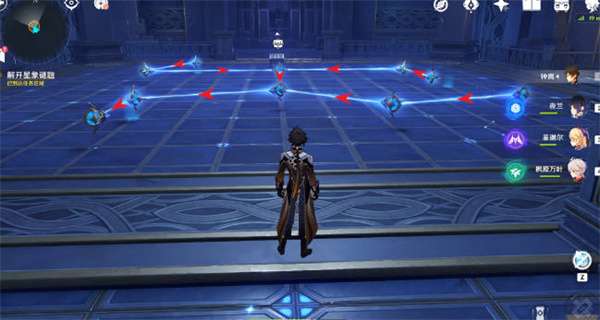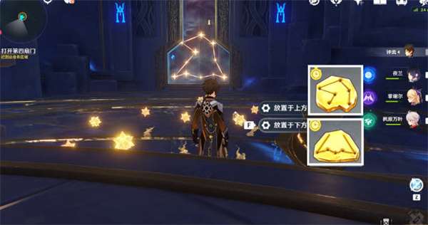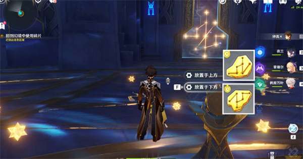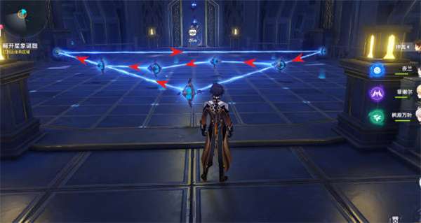8:返回秘境去西北角的房间,然后解密,答案如图所示,然后开宝箱,继续跟着星星,然后我们不是挑战了,我们要先找到一个星星,我们需要在进入房间之前,把东北角的一个装置,取出碎片,用取下来的碎片和开始获得的开启西南角的大门,然后星象解谜,然后跟着星星,在星星海中找到目标星星即可。