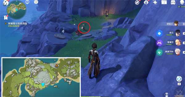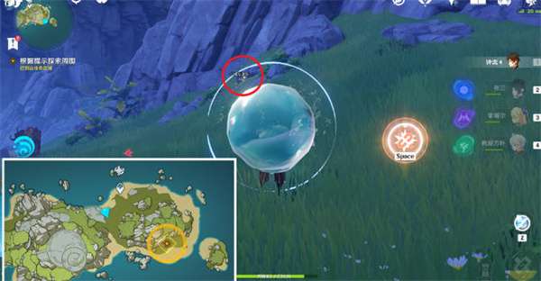 5:然后结束之后,这一部分就结束了,离开秘境之后继续跟着,寻找碎片,在标记位置可以看到一个丘丘人,靠近点击挖掘获得道具;