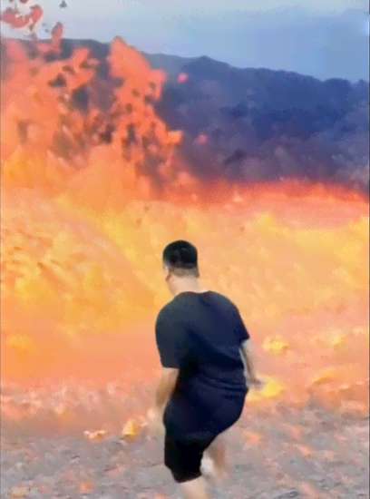 该梗出自抖音带货主播@疆域阿力木,不管是直播还是发视频,他与他所在的地方都格格不入,明明身后是新疆的蓝天白云,自然风光,但就是主播站在那里就感觉背景是p的,于是总是被大家评论说背景是假的。