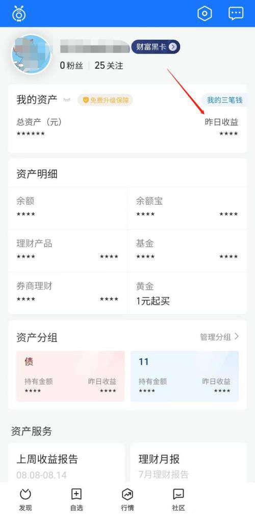 2、点击昨日收益;