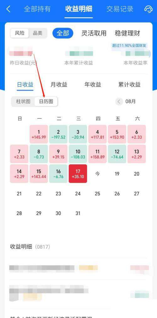 蚂蚁财富怎么查讯收益日历