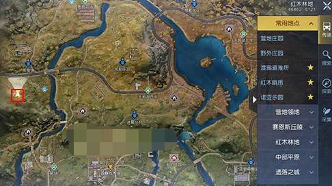 1、前往红木林地左侧的位置,如图所示红框位置。