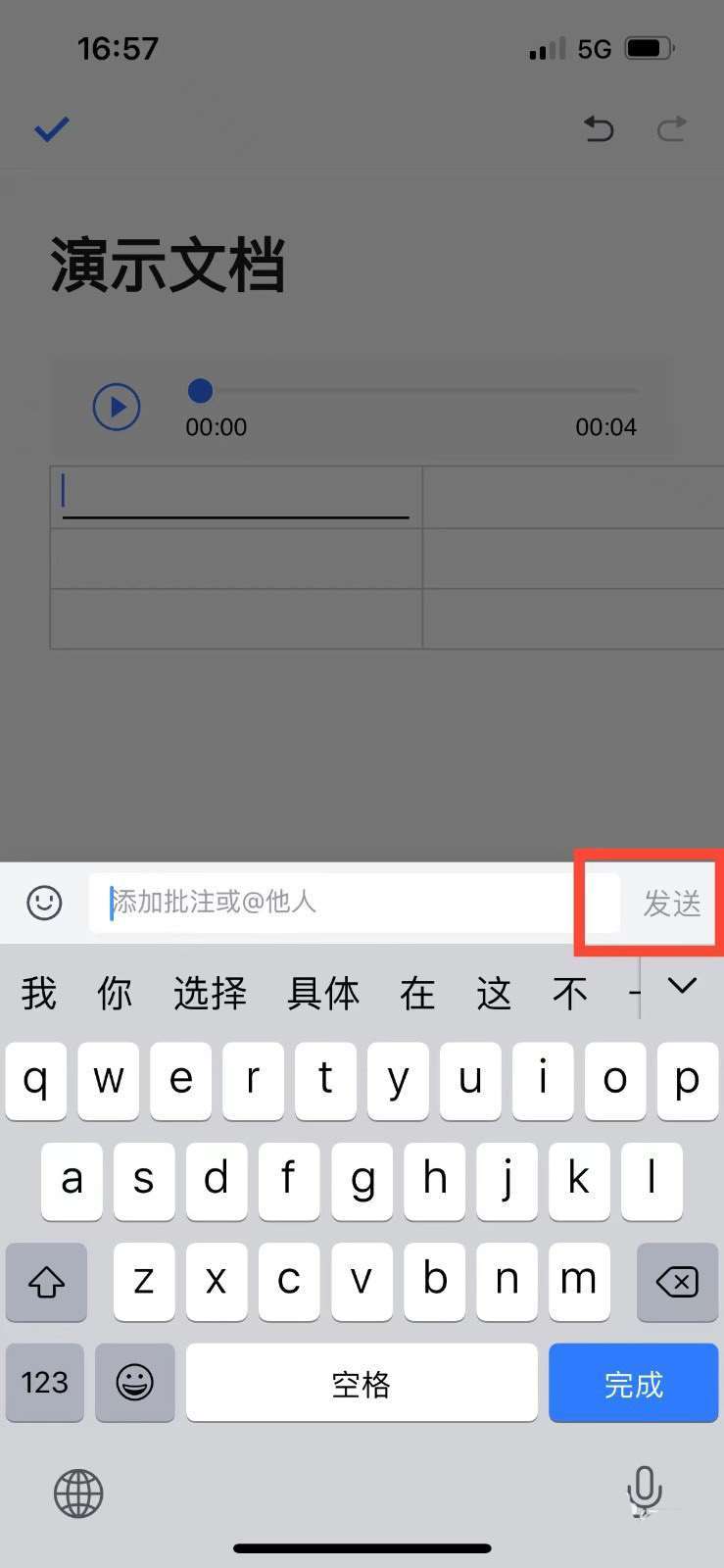 3、随后,输入批注内容,点击发送即可。