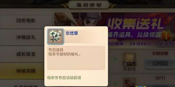 游戏周末时会开启很多神秘活动,玩家可通过参加活动,根据要求完成任务,从而获得大量忘忧草。