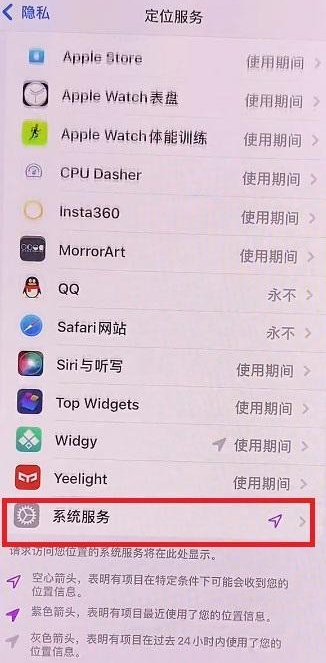3、在定位服务功能页面中,在最下方可以找到【系统服务】点进入到界面中;