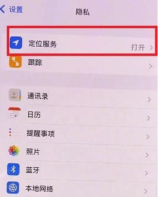 2、然后在隐私界面中,找到【定位服务】应该是在最上方,然后点击进入到定位服务功能界面中;