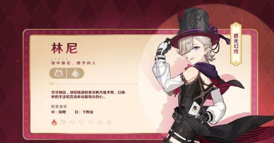 林尼,被誉为枫丹最耀眼的魔术师之一。他的弓术精湛,能将火元素的戏法引入战斗中。当林尼蓄力发射隐具魔术箭时,将能召唤一顶「怪笑猫猫帽」,嘲讽附近的敌人。