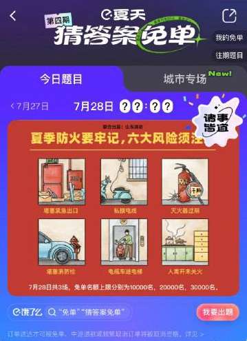 饿了么免单一分钟7.28的题目是关于消防方面的问题,所以和这方面的相关数字会有所联系,不知道大家是否猜出了正确的答案是什么呢?下面小编就为大家带来了饿了么免单7.28答案,饿了么免单一分钟7.28答案,希望对你有所帮助。