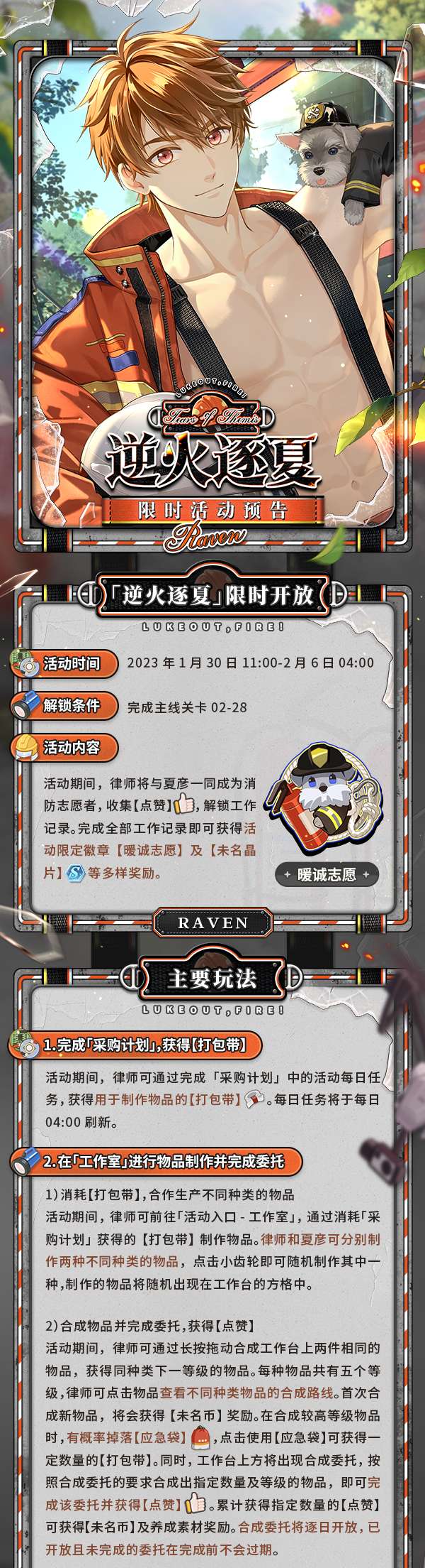 未定事件簿逆火逐夏 限时活动即将开启 夏彦邀请函炽援上线