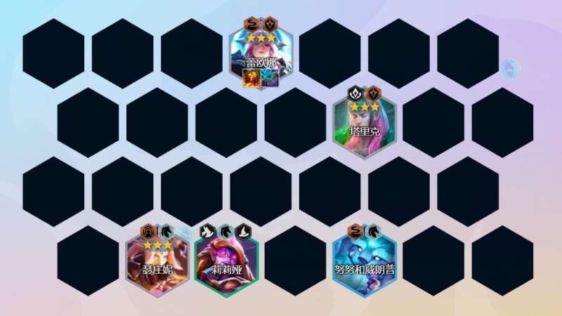 3阶段:3-1阶段直接搜光,主要追3星蕾欧娜>塔里克>瑟庄妮,这3张低费卡尽量都拿。蕾欧娜3星在3阶段锁血能力非常强,5人口有努努直接上努努开2幻境3重骑羁绊,如果没有可以用永恩来代替。