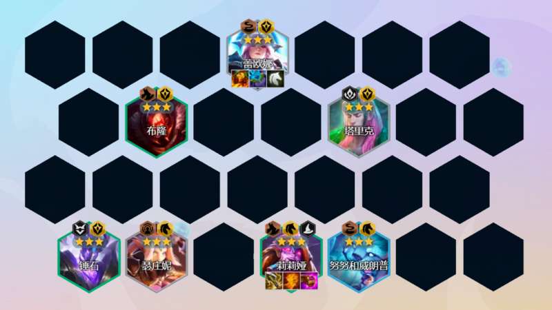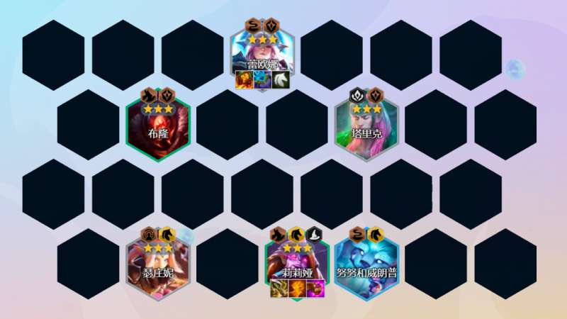 阵容组成:蕾欧娜、塔里克、瑟庄妮、莉莉娅、布隆、锤石、努努