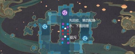 顺序:左上右下先用回收,等到第四波的时候用水。