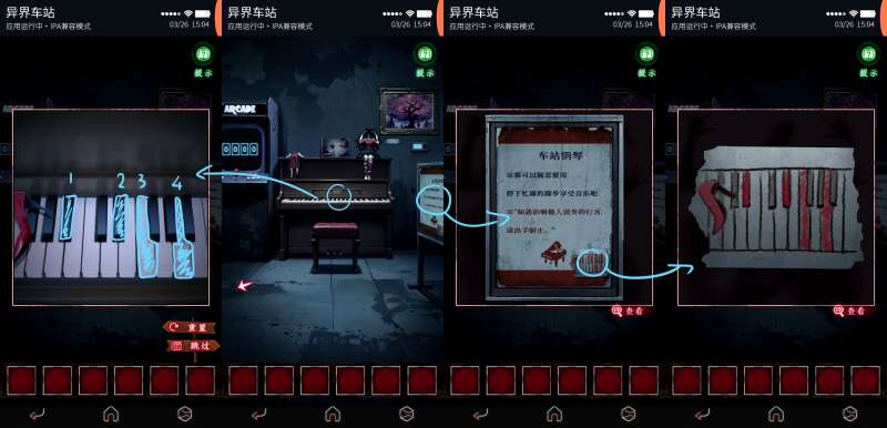 使用获得的唱片与摇把装载入留声机,得到锤子;使用锤子击破站台大门。