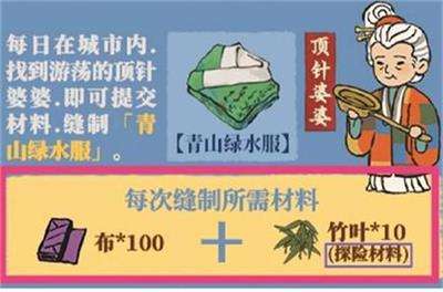 《江南百景图》游戏中青山绿水服需要用布和竹叶才能缝制,需要玩家们在城市里找到顶针婆婆,集齐材料后点击缝制才能进行,那么今天小编就给大家介绍一下江南百景图青山绿水服制作攻略,有需要的小伙伴不要错过了。